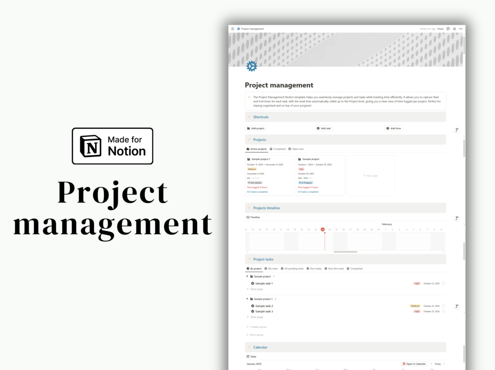 The Project Management Notion Template is designed to help you efficiently manage projects, track time spent, and calculate total amounts based on your hourly rate. This streamlined system allows you to organize your work while keeping an accurate record of the time logged for each project.